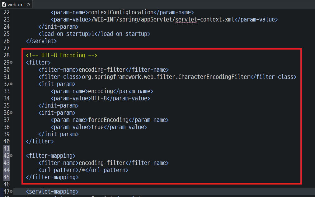 <filter-class>org.springframework.web.filter.CharacterEncodingFilter</filter-class>