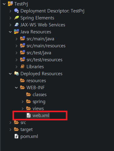 web.xml의 경로는 "My Project\src\main\webapp\WEB-INF\web.xml" 이며 아래는 이클립스로 접근한 사진입니다.