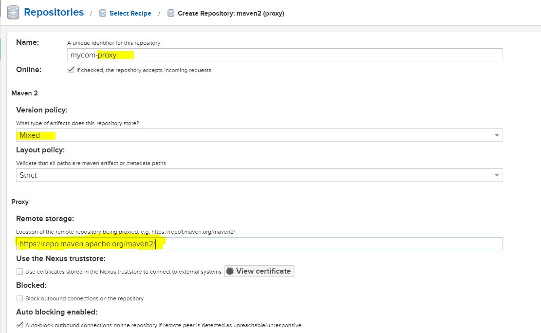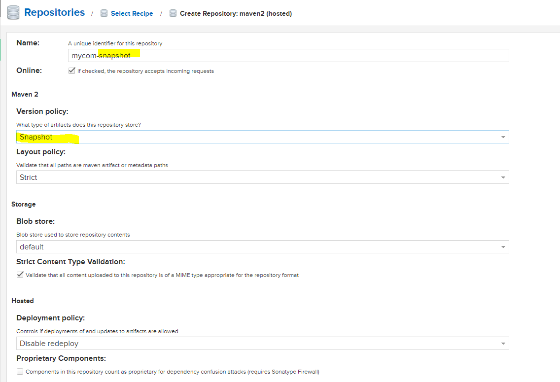 여기도 마찬가지로 각각의 항복을 아래 그림과 비슷하게 적어주시고, repository type은 Mixed으로 정의합니다.