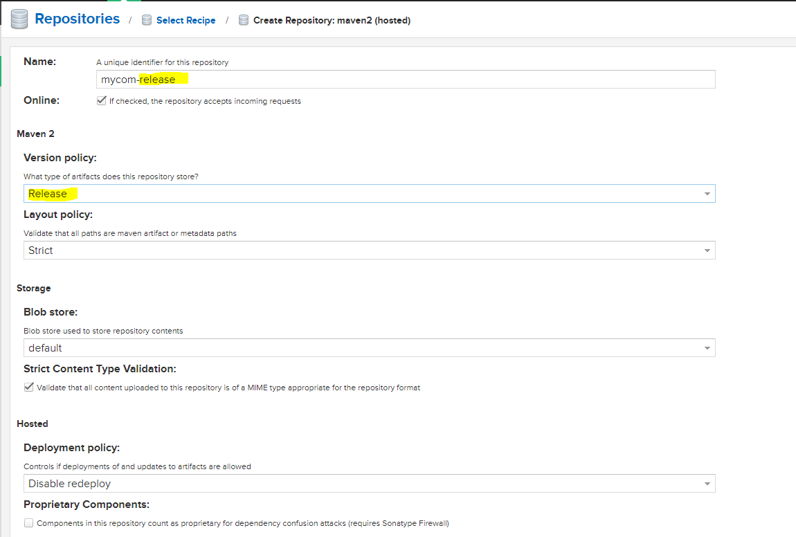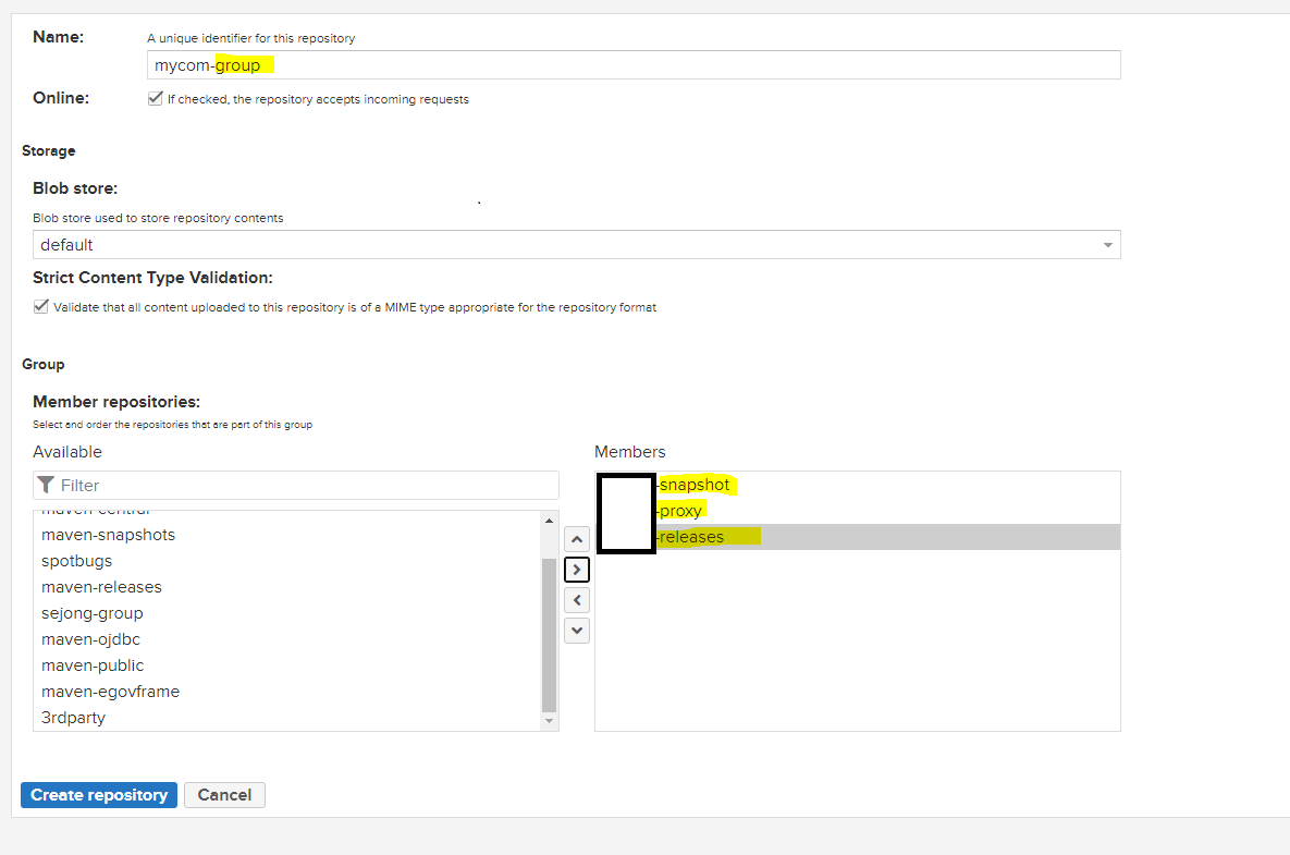 각각의 항목들을 적어주시고, respository의 타입을 Release로 변경하여 저장해주시기 바랍니다.