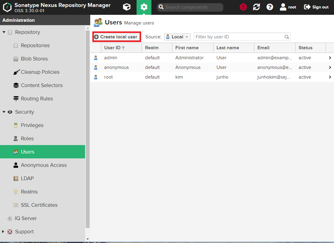 먼저 Users 탭에 create local user 를 선택해주세요.