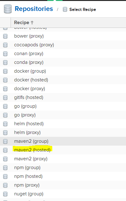 그리고 아래와 같이 maven2(hosted)를 클릭합니다.