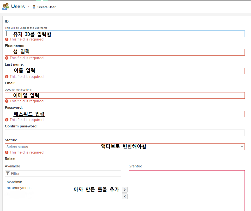 각각의 항목을 입력한 후 Roles 폼 데이터 쪽에 아까 만들었던 Role 을 추가하도록 하겠습니다.